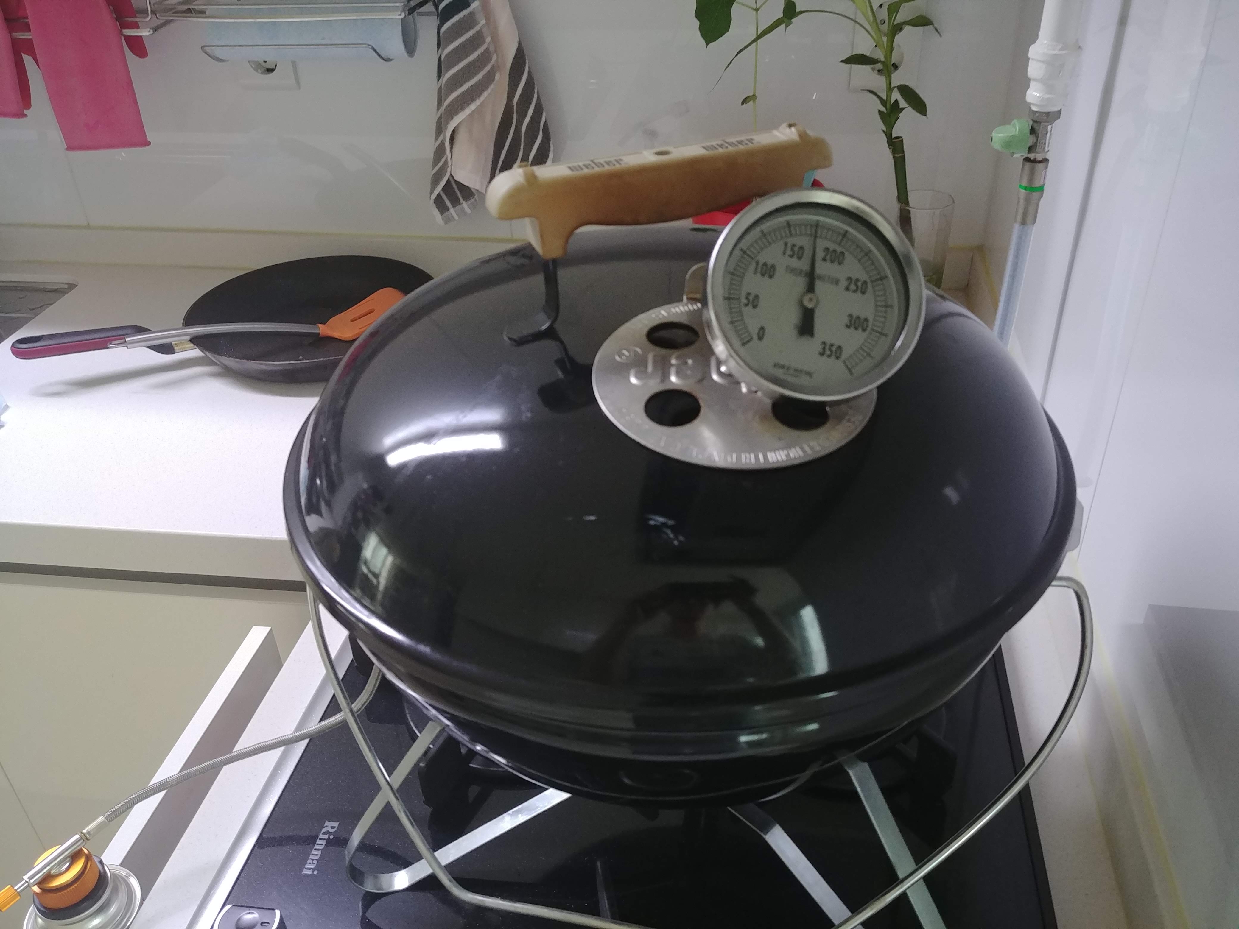 2시간쯤 지나서 뚜껑을 열었다. 아직 덜익었다. 고기 심부온도가 약 70도