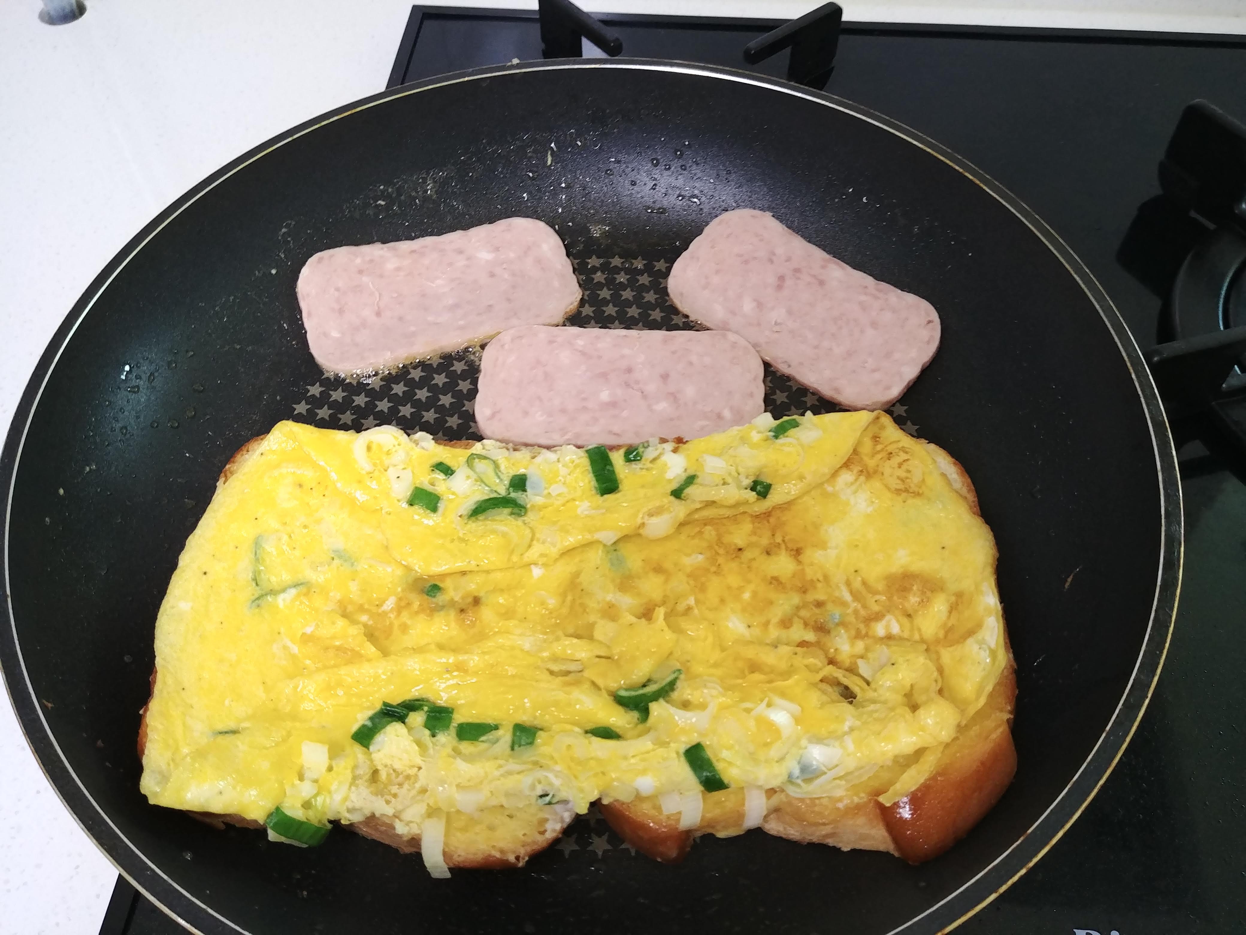 스팸이 익어가는 동안 빵이 탈까 봐 걱정됩니다.. 약불로 해주세요.