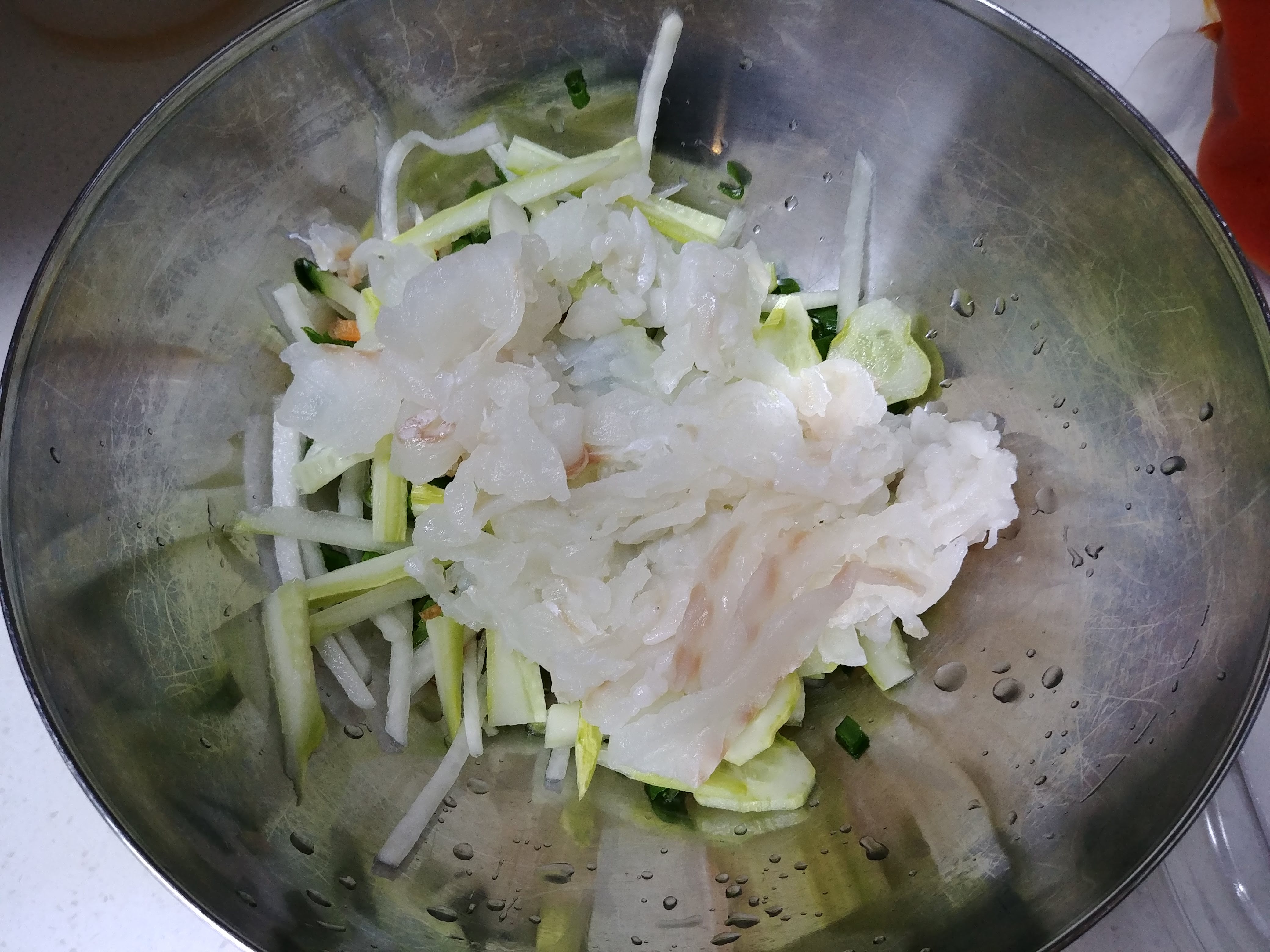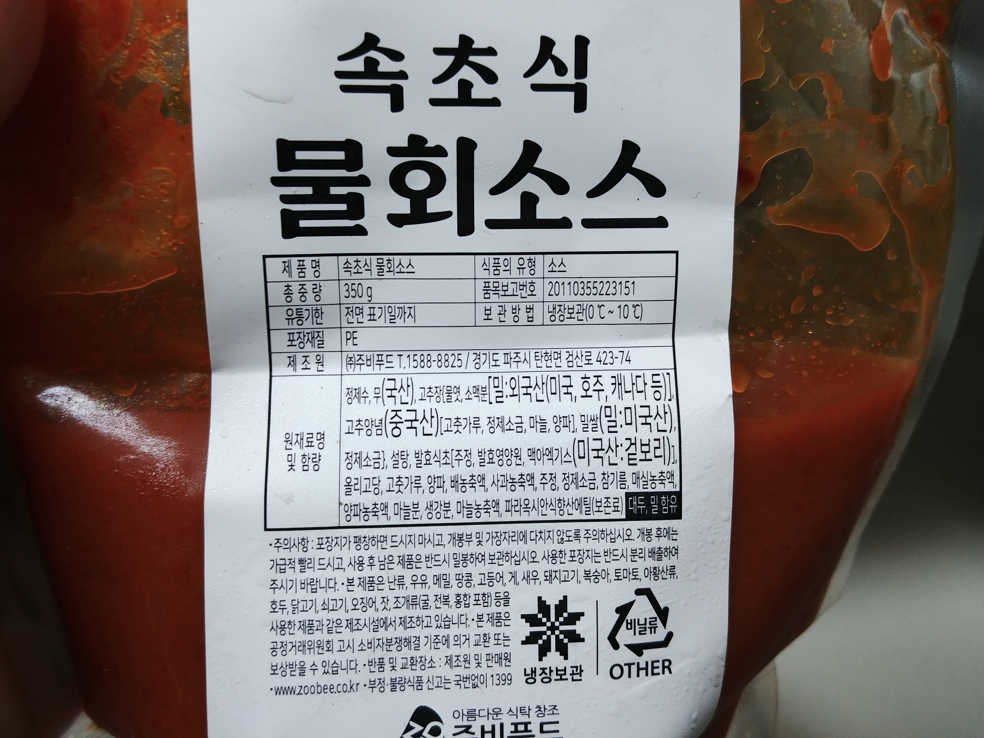 속초식 물회 소스를 부어주면 맛있는 물회 한 그릇 완성~