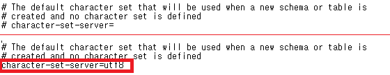 그 중 주석으로 되어있는 기본 문자셋과 서버 문자셋을 utf8로 변경하면 된다.