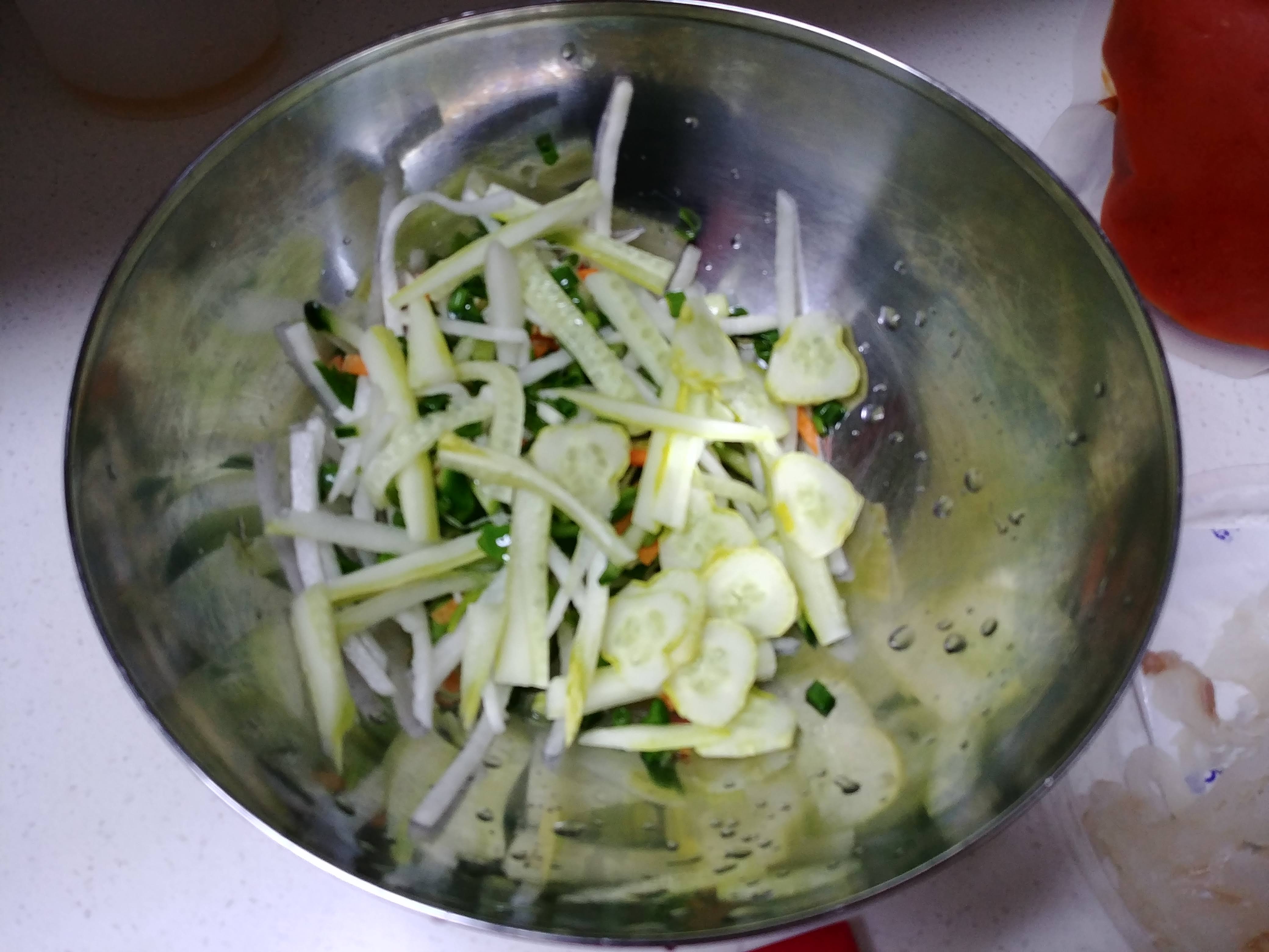 냉장고에 있던 오이를 반개 잘라서 넣었다.