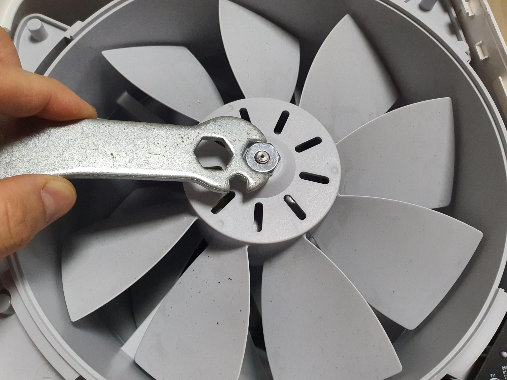 밑 날개는? 걸래를 드라이버에 말아 닦기 시도했으나 잘 안된다..
